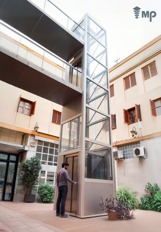 Pentru clădirile deja existente, echipa MP IFMA asigură o varietate de soluții inovatoare, pentru a integra ascensorul în cadrul clădirii, sau chiar în exteriorul ei.